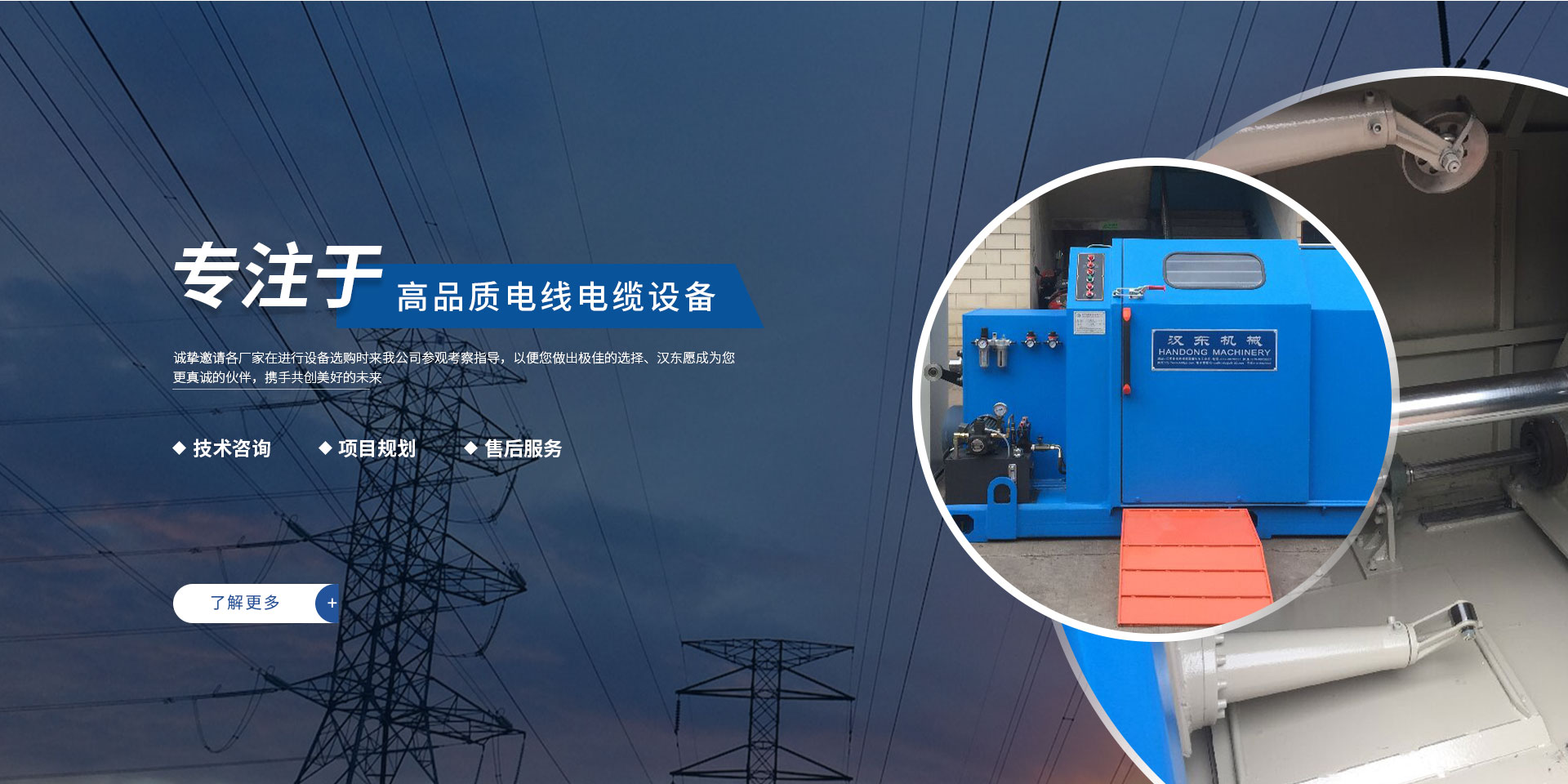 常州漢東機(jī)械始創(chuàng)于2006年,是集電線電纜機(jī)械設(shè)計、開發(fā)、制造、安裝、調(diào)試為一體化的高科技企業(yè)。本公司自開業(yè)以來,積極引進(jìn)日本,歐美等國外電線電纜設(shè)備之先進(jìn)技術(shù),先后成功推出了達(dá)到行業(yè)先進(jìn)水平的電線電纜設(shè)備,主要產(chǎn)品有擠出、繞包、束線、成纜等電線電纜固定設(shè)備。在提供系統(tǒng)設(shè)備的同時,還向客戶提供售前技術(shù)咨詢、項(xiàng)目規(guī)劃、以及售后服務(wù)。我公司本著“以人為本、科技先導(dǎo)、用戶為上”的宗旨,為客戶提供牢靠的產(chǎn)品與省心的服務(wù)。漢東愿成為您更真誠的伙伴,攜手共創(chuàng)美好的未來! 了解更多+大核心優(yōu)勢
